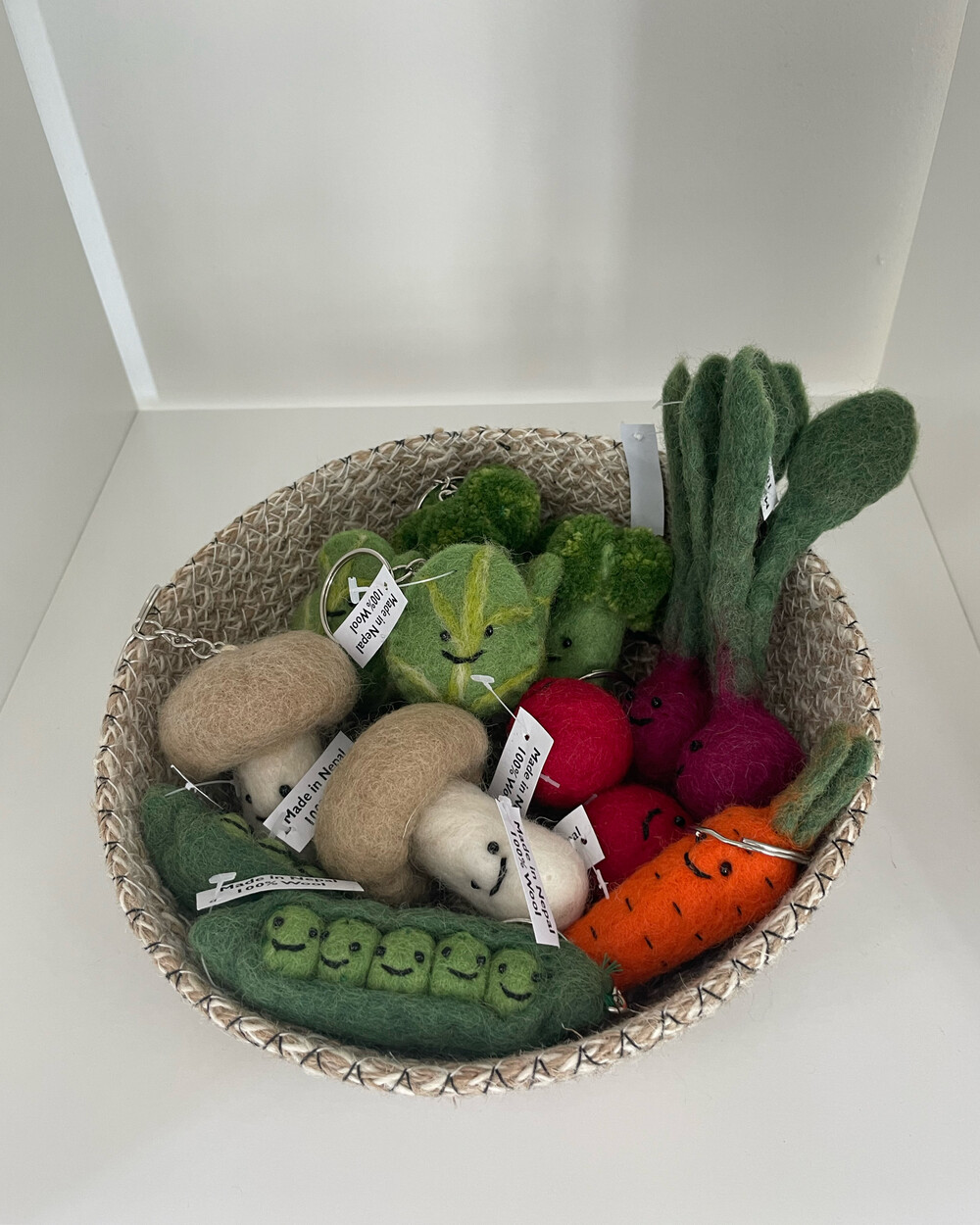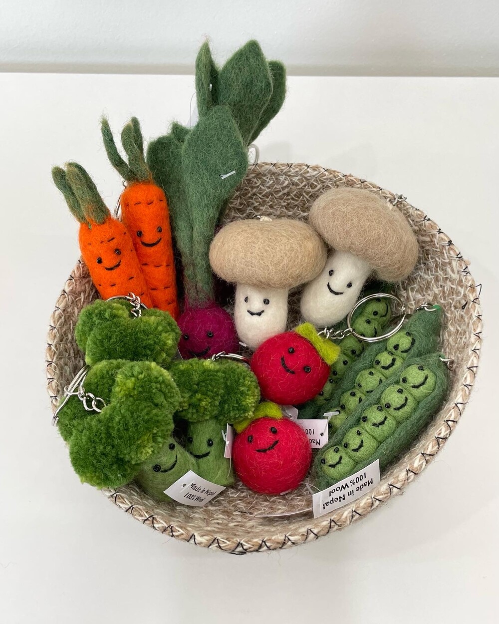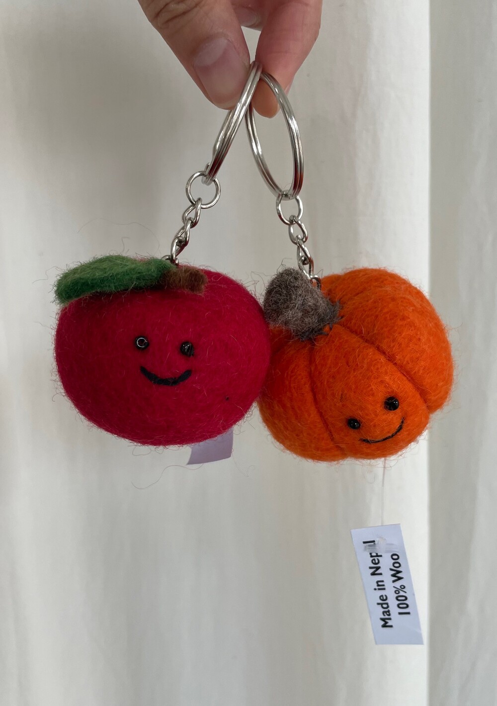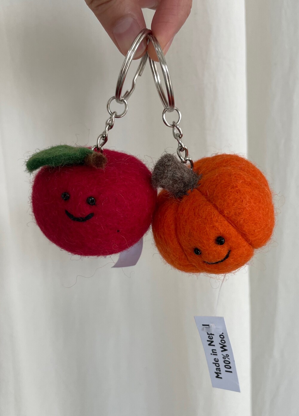 네팔에서 건너온 양모 100% 핸드메이드 야채 키링입니다.