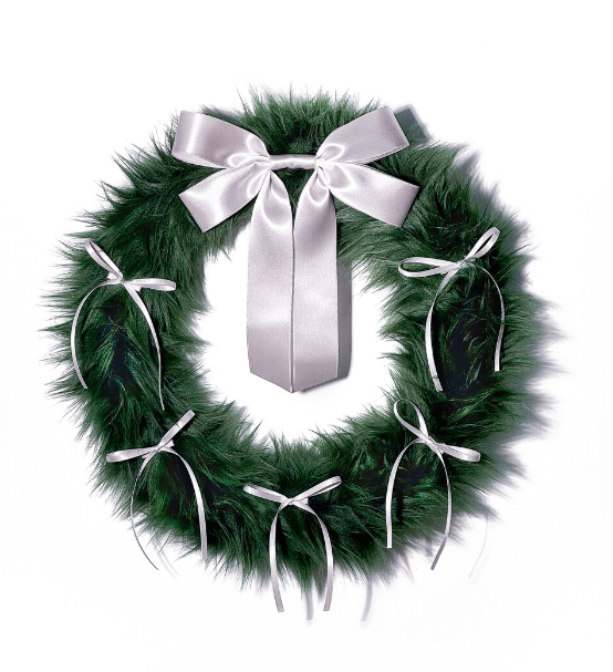 FURRY RIBBON WREATH (Green/silver)