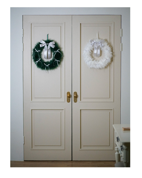 KIKOU) FURRY RIBBON WREATH (Green/silver)