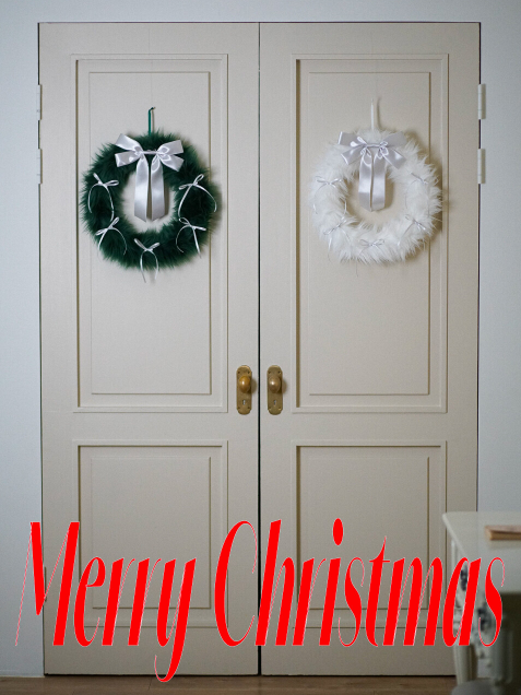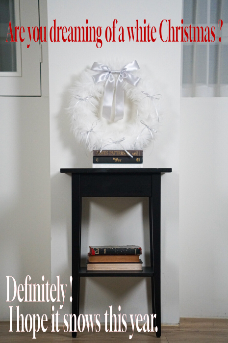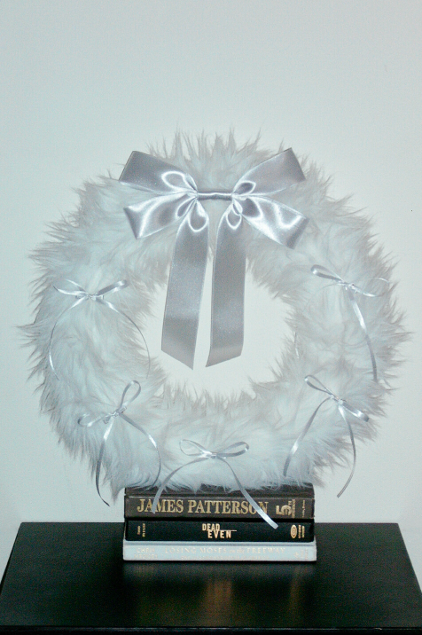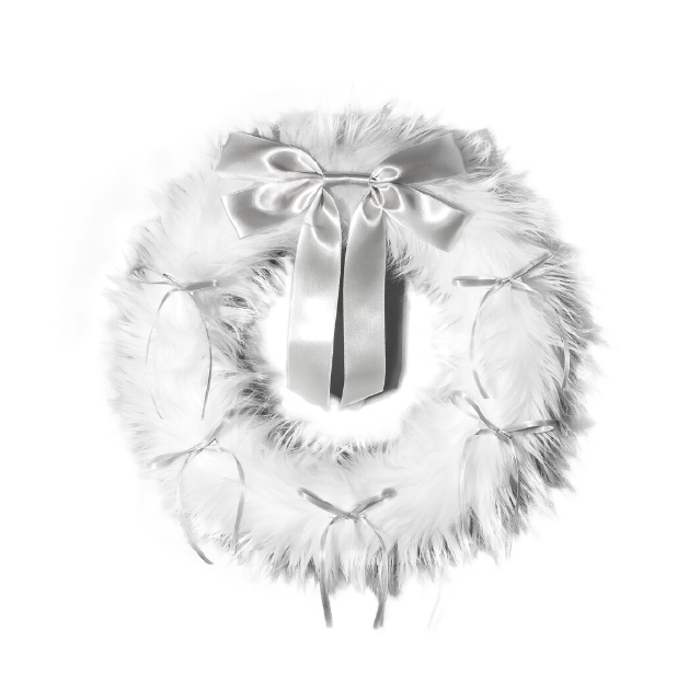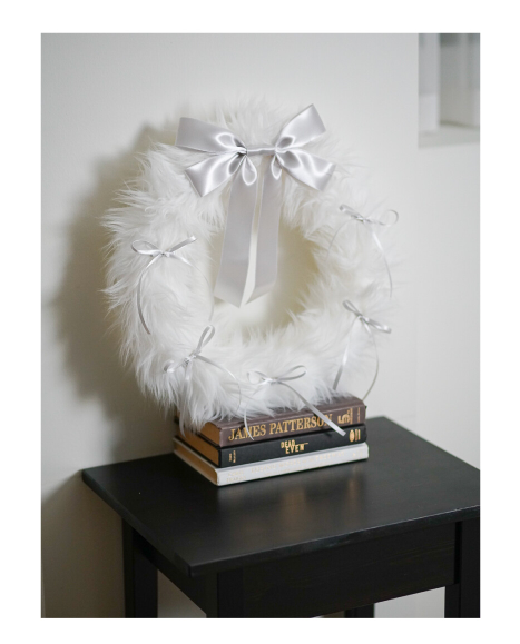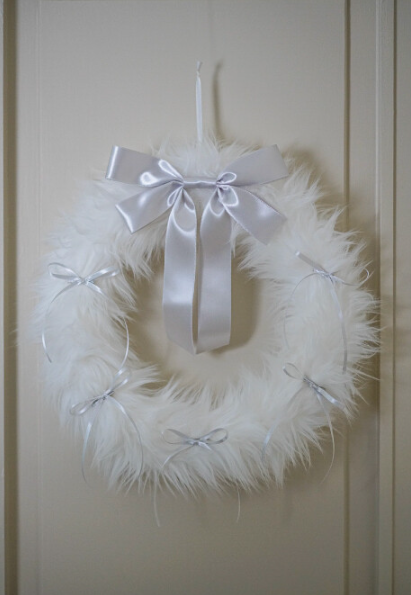 FURRY RIBBON WREATH (White /silver)
